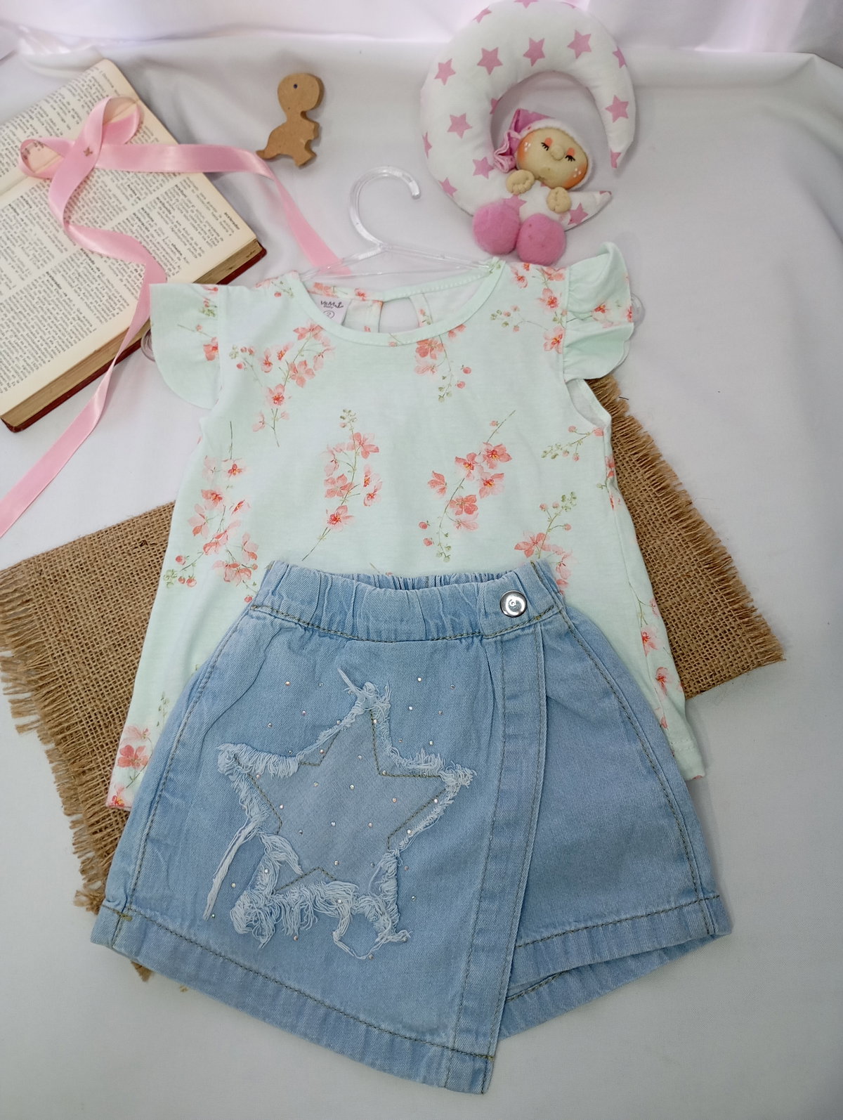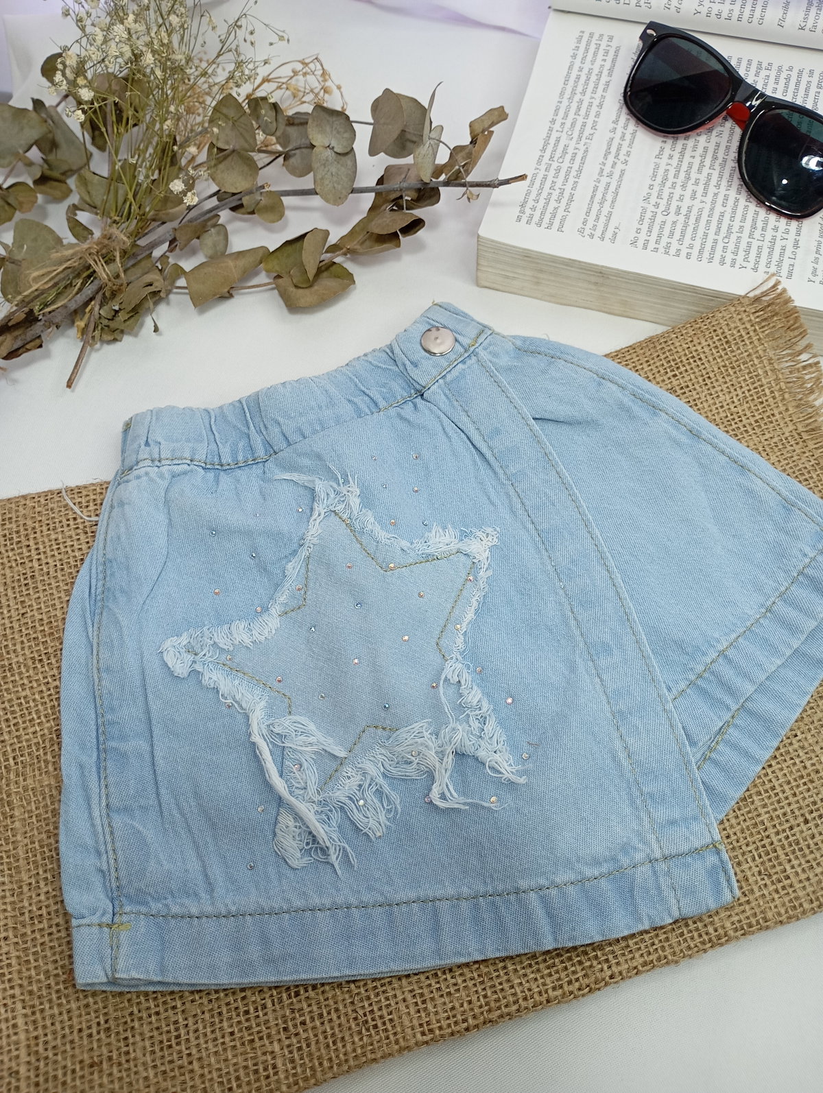 Short pollera hermoso, realizado en una tela de jean liviano