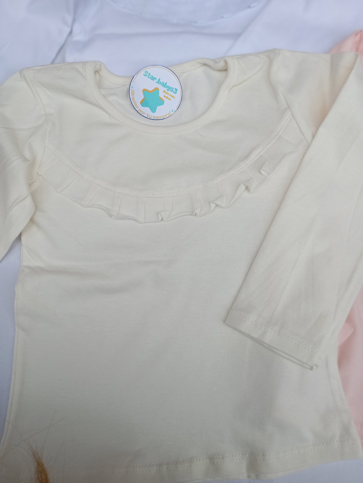 Camiseta de algod贸n con detalles de volados en la parte delantera